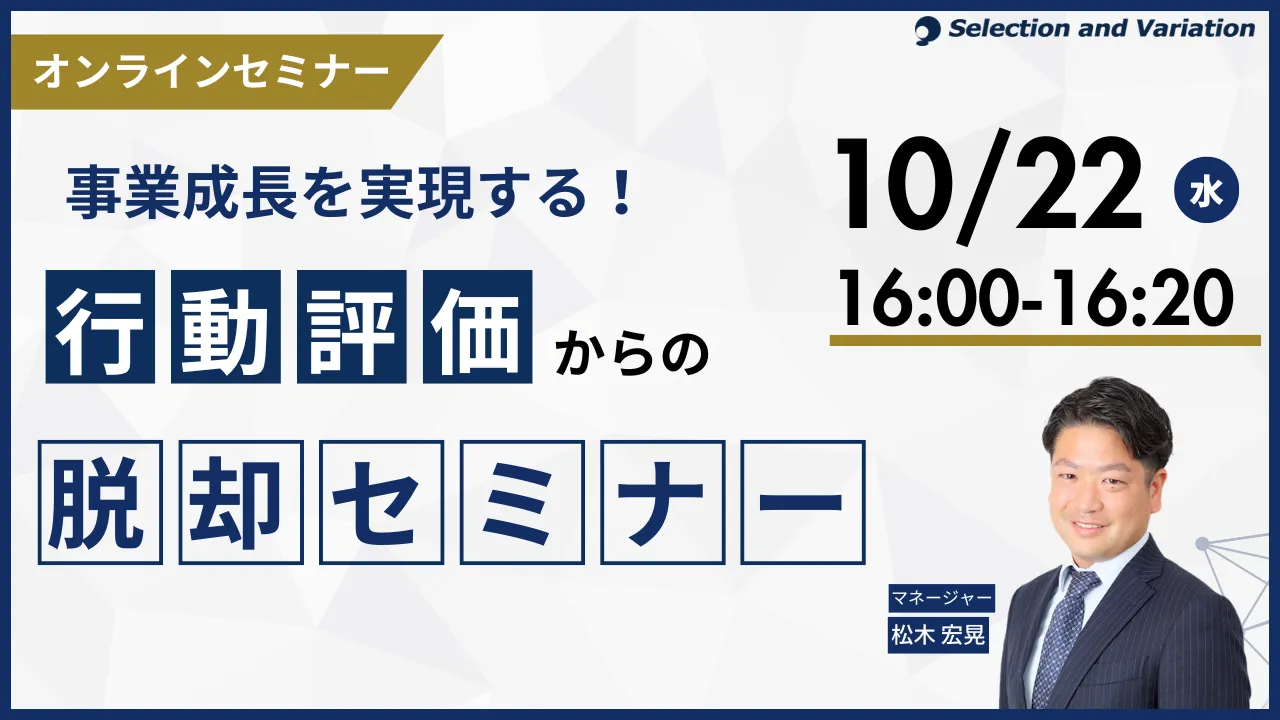 セミナー情報を公開しました 「事業成長を実現する!行動評価からの脱却セミナー」【 10月22日(水)16:00〜16:20】