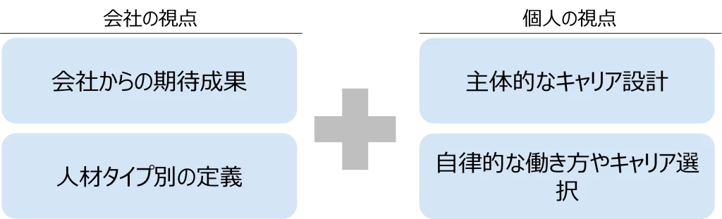 自社のコア人材やプロフェッショナル人材の明確な定義をもとに、社員自身が自律的に働き方やキャリアを選択できるようにすることで、会社と個人、それぞれの継続的な成長を促進します。